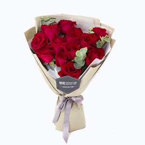 心甘情愿-13枝紅玫瑰+尤加利葉鮮花花束