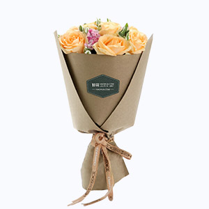 忠貞誓言-11枝香檳玫瑰+粉色相思梅純愛花束