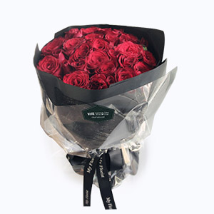 熱情如火-33枝紅玫瑰+夢幻黑紗鮮花花束